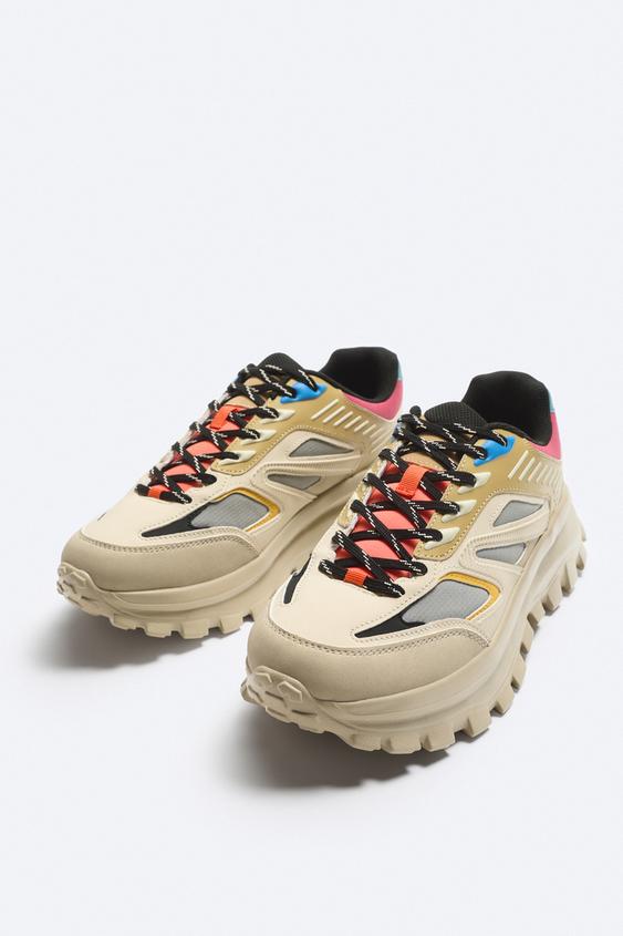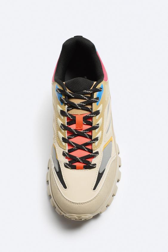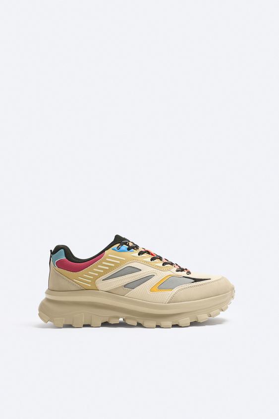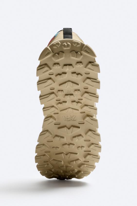 Baskets. Partie supérieure fabriquée en plusieurs pièces et matériaux. Semelle crantée épaisse.