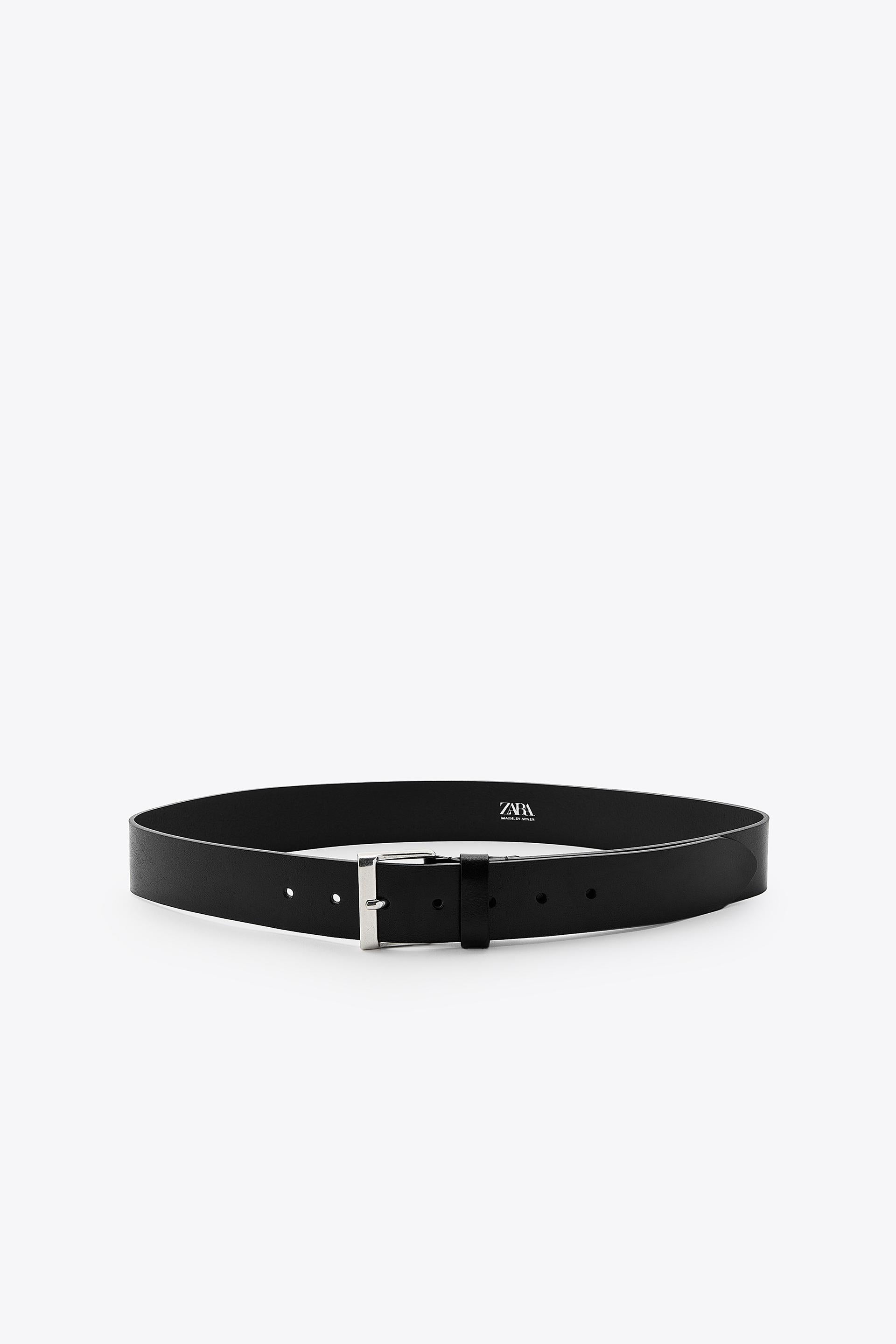 4 cm wide leather belt. Square metal buckle.