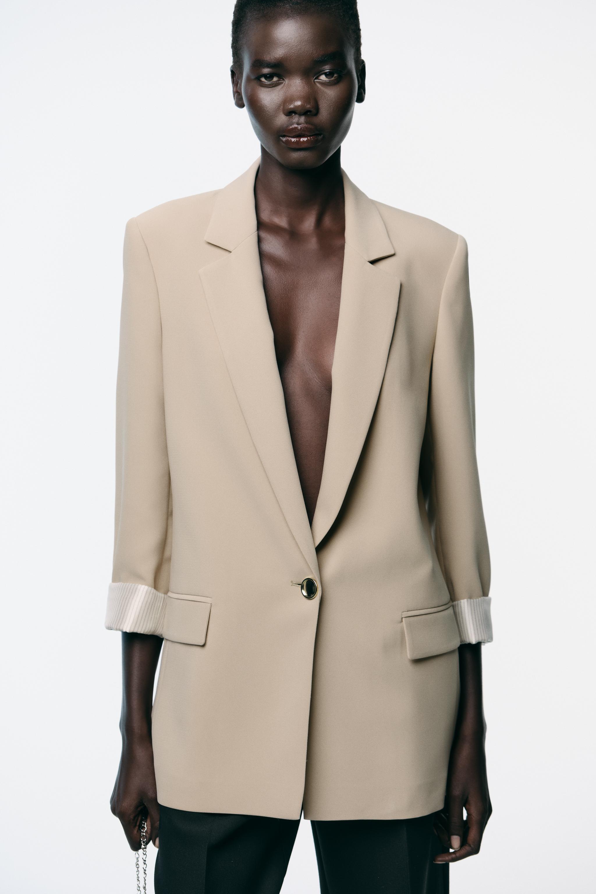 Blazer with a lapel collar and long sleeves with shoulder pads