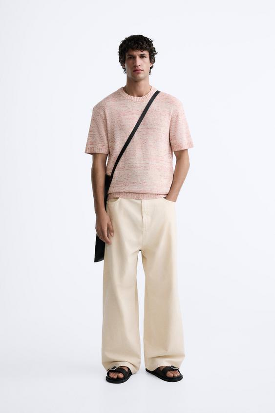 T-shirt en maille tricoté à partir d’un fil de coton. Col rond et manches courtes. Finitions côtelées.