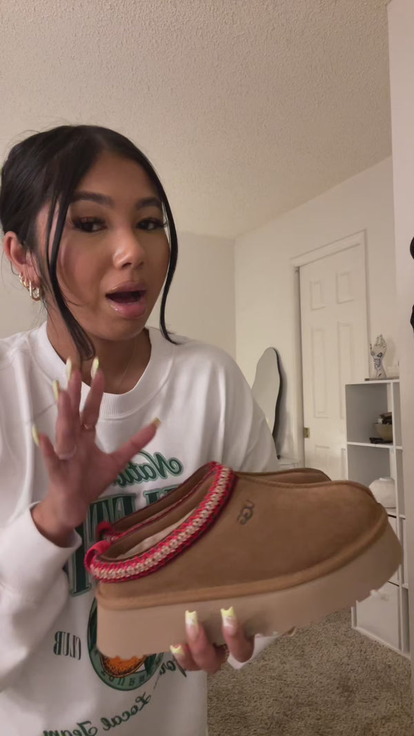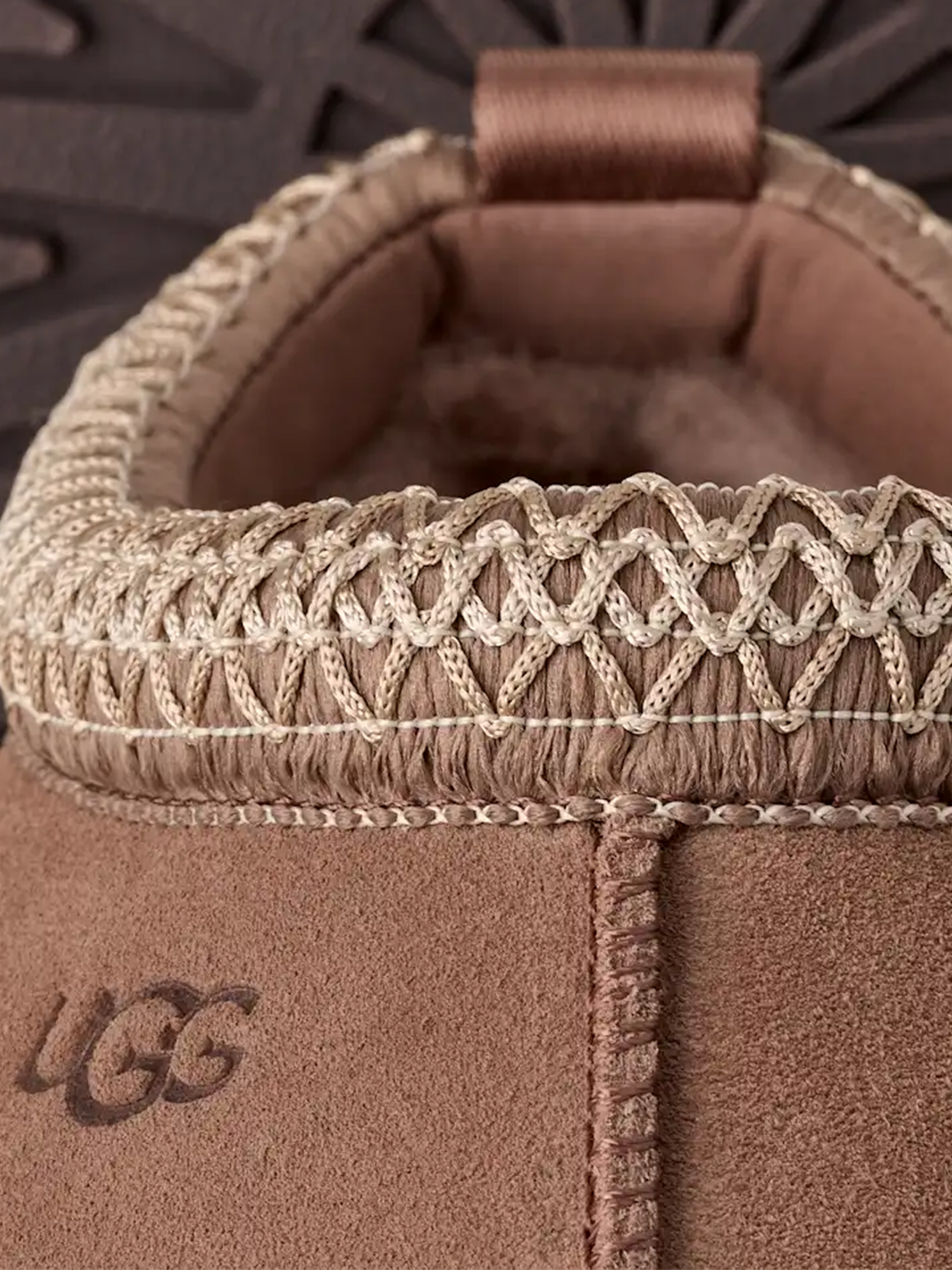 La Tazz II pour femme allie confort et légèreté à un style durable. Confectionnée en daim lisse avec une doublure en peau de mouton moelleuse, cette chaussure à plateforme est dotée d'une semelle rocker améliorée pour des mouvements sans effort. Le détail UGGbraid est composé à 100 % de polyester recyclé, tandis que la semelle extérieure en EVA à base de canne à sucre offre une grande durabilité. Avec une plateforme de 4,4 cm et une semelle intérieure en peau de mouton de première qualité, elle est conçue pour être portée toute la journée. Fabriquée dans une usine qui soutient les femmes grâce à l'initiative RISE.