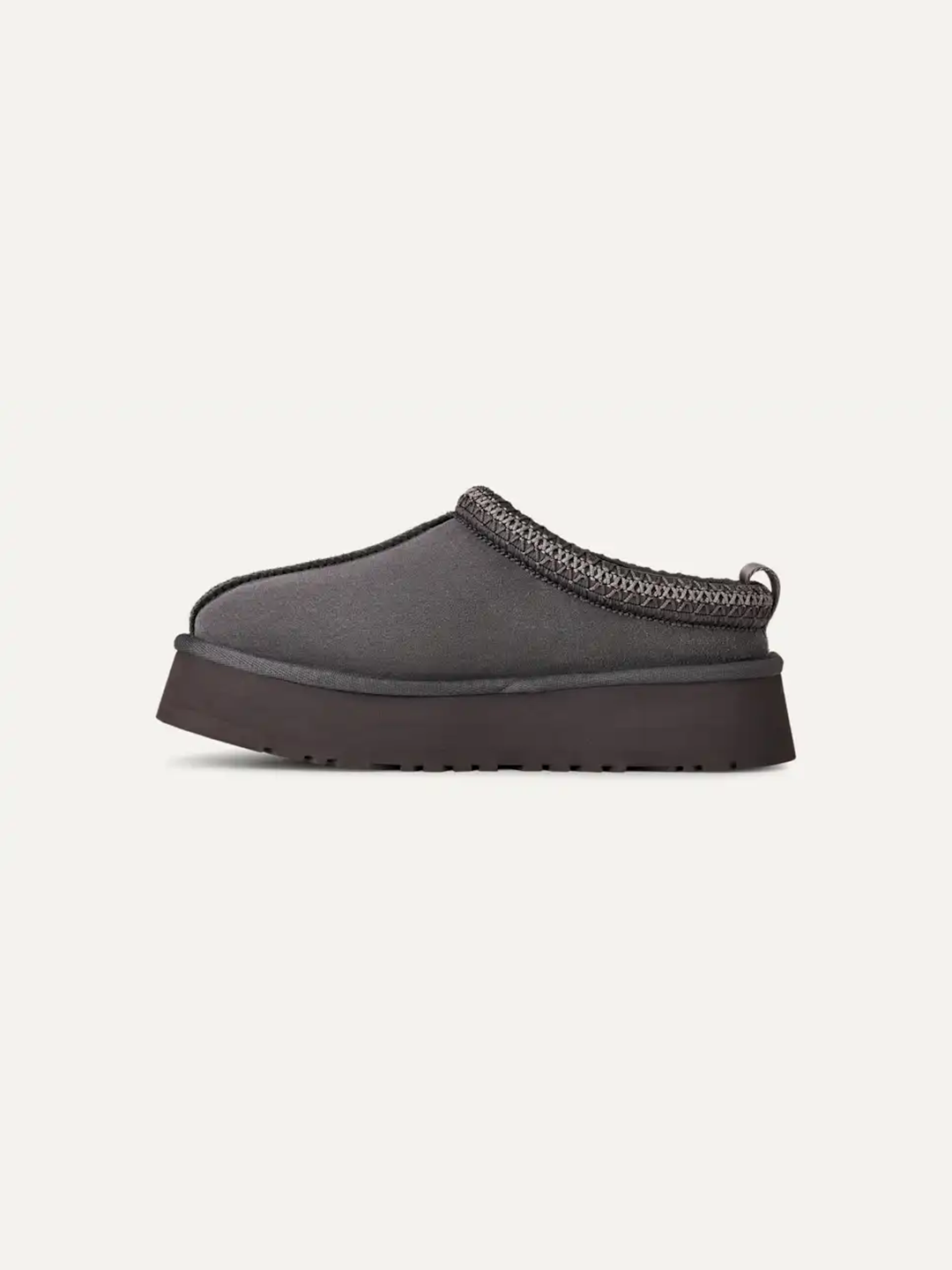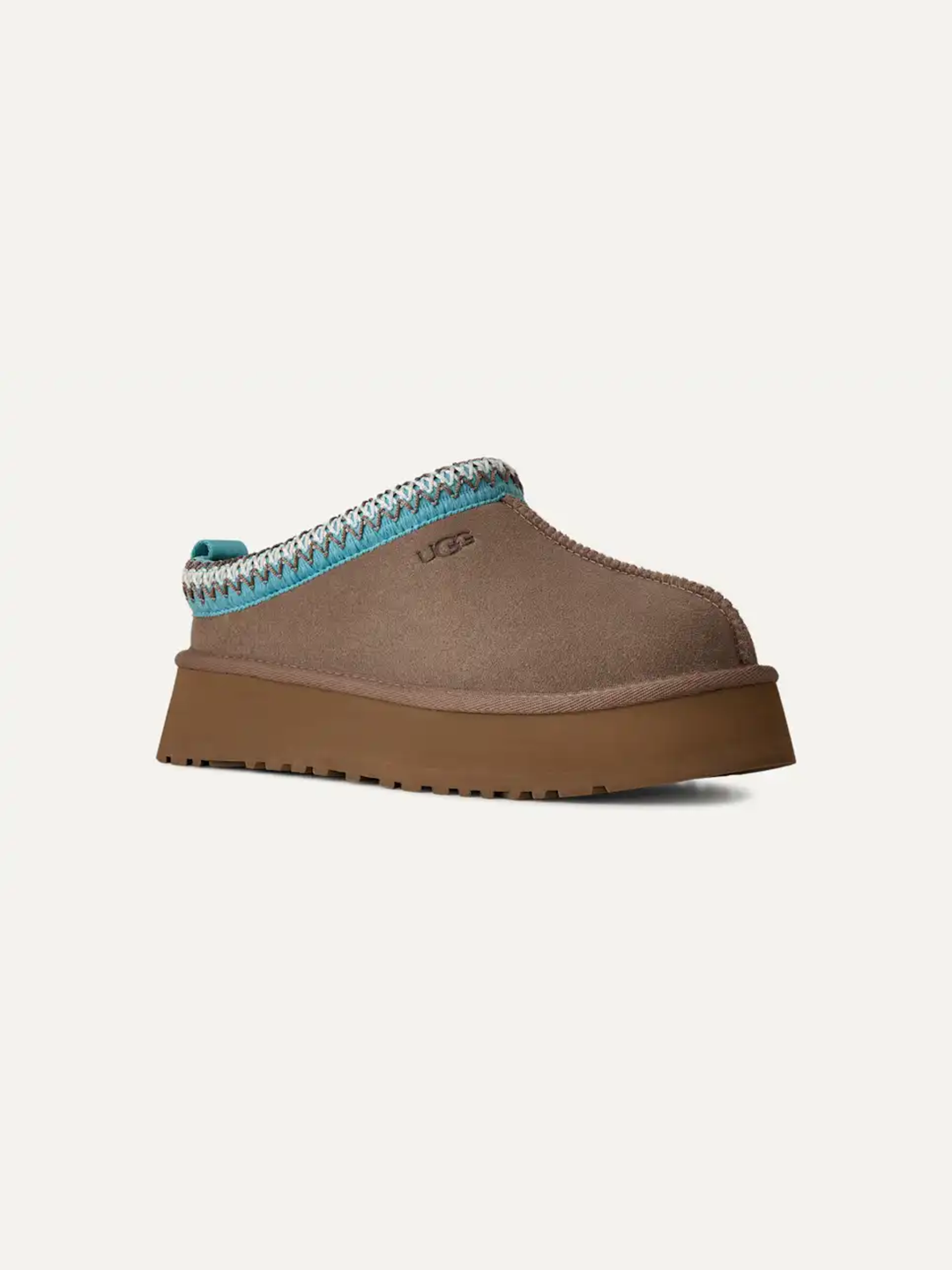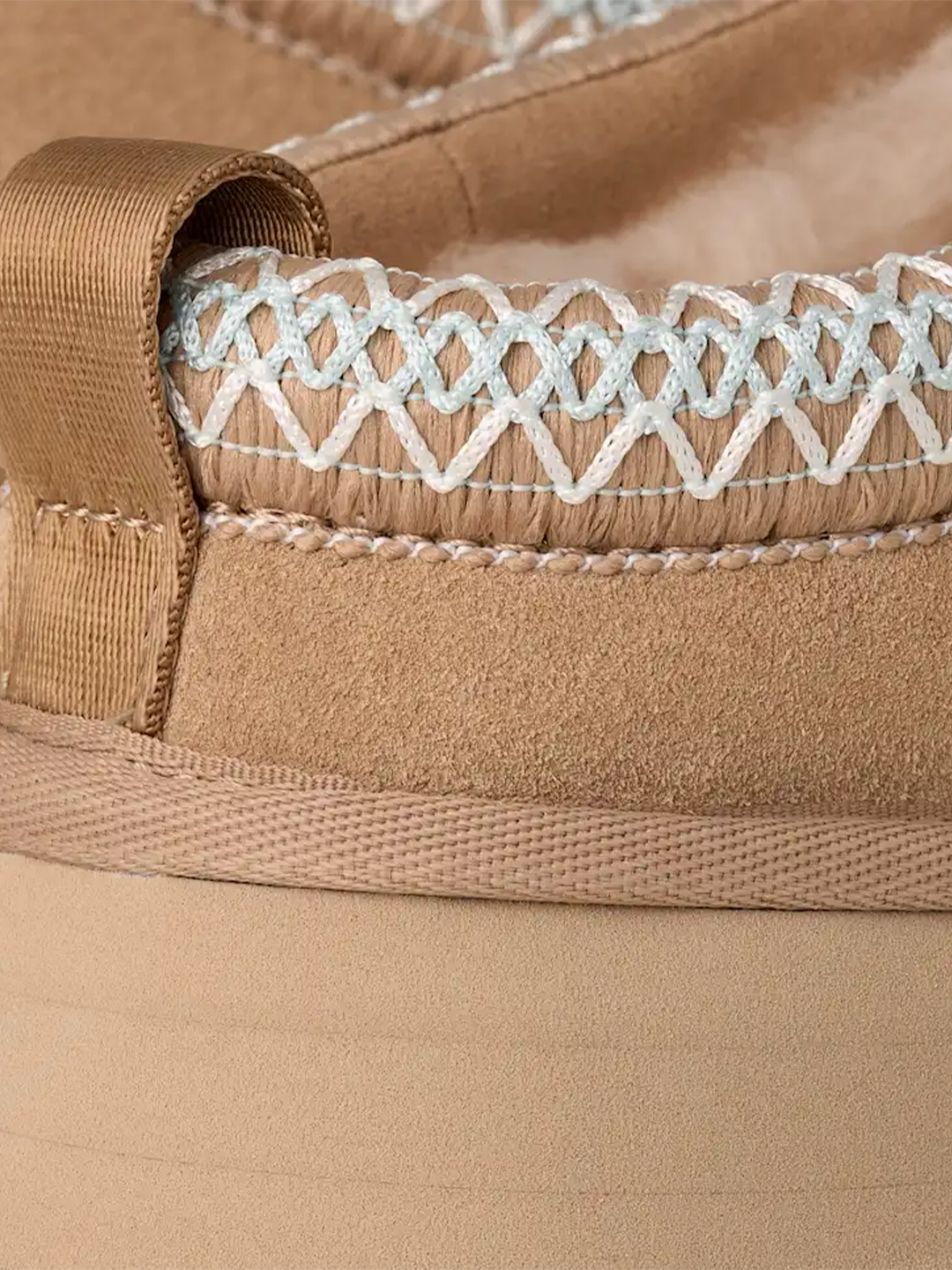 Women's Tazz II combines lightweight comfort with sustainable style. Crafted from smooth suede with plush sheepskin lining, this platform shoe features an enhanced rocker sole for effortless movement. The UGGbraid detail uses 100% recycled polyester, while the sugarcane EVA outsole delivers durability. With a 1.75" platform and premium sheepskin insole, it's designed for all-day wear. Made in a factory supporting women through the RISE initiative.